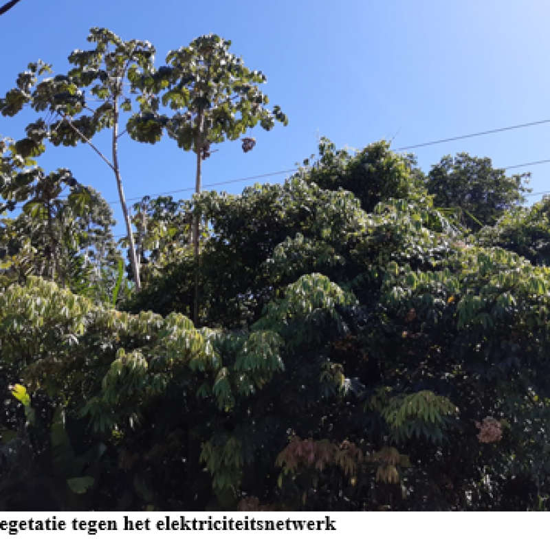 PARAMARIBO 02 OKTOBER 2020- In de afgelopen maanden hebben klachten de N.V. Energiebedrijven Suriname (EBS) bereikt over kortstondige stroomonderbrekingen in de gebieden Upkarprojekt, Noordpolderdam, Houttuin en Leidingen. Na root cause analyse bleek de oorzaak het meest te liggen aan vegetatie die dicht bij en vaak genoeg tegen het elektriciteitsnetwerk aankwam waardoor er kortstondige stroomonderbrekingen optreden in deze omgeving.